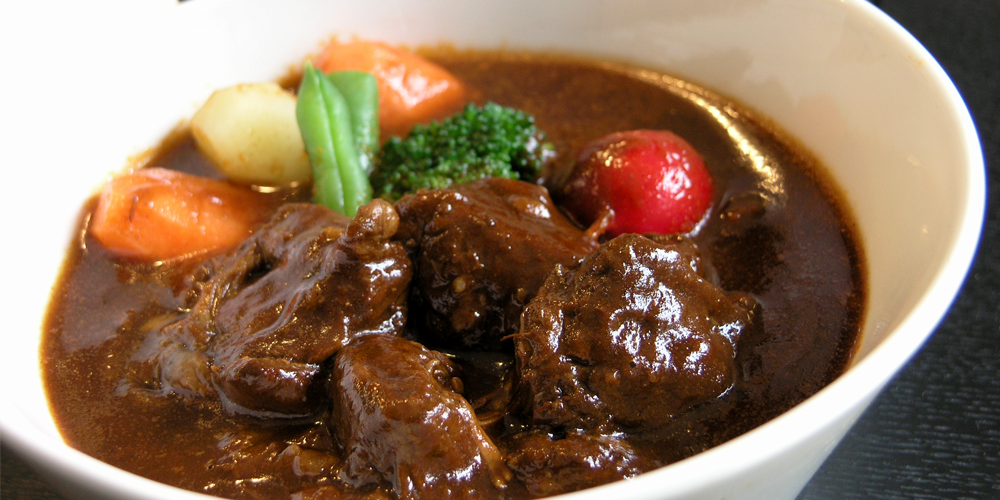 国産牛肉,国産豚肉の合挽きを使用し、玉ねぎは主に北海道産を使います。